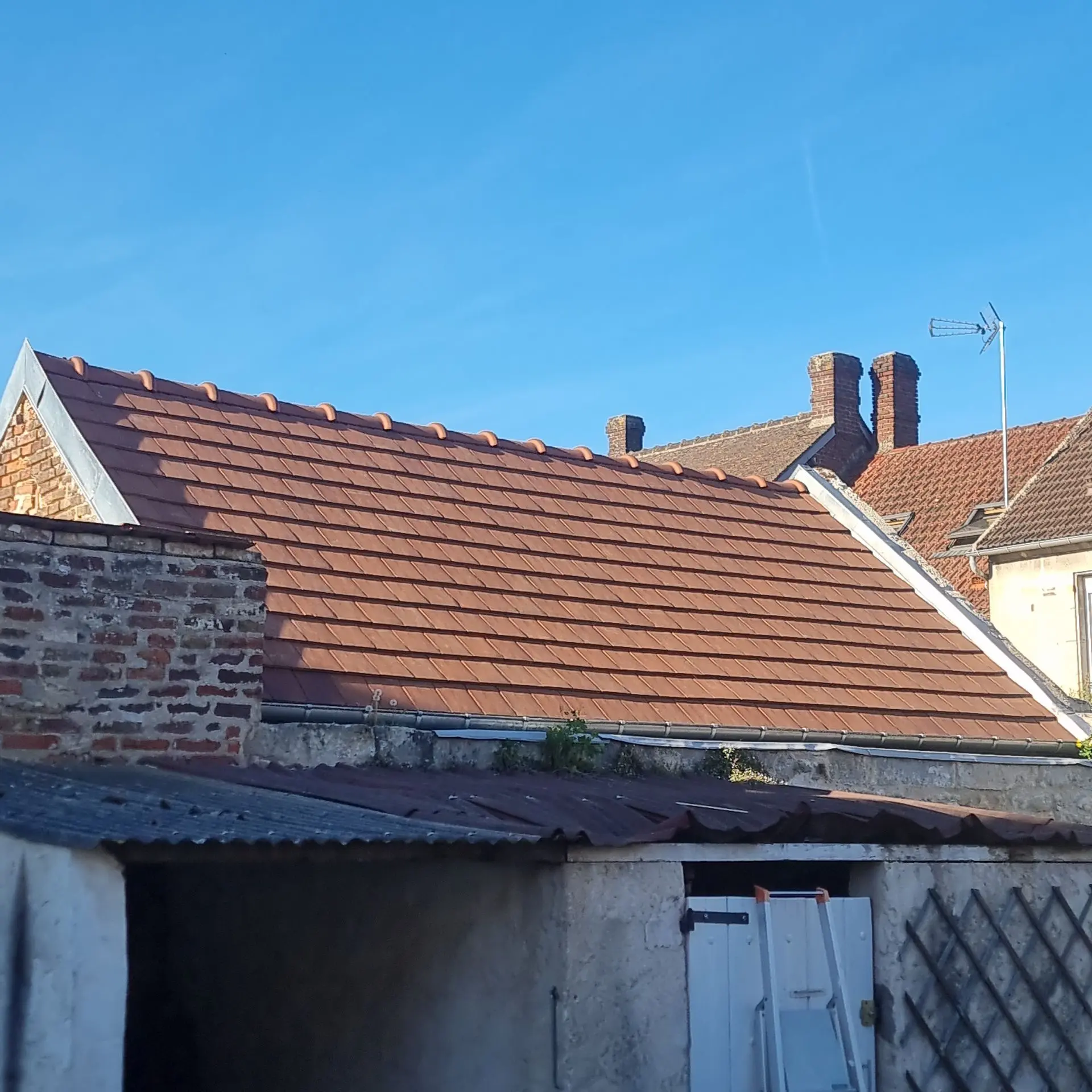 Changement de tuile (tuile beauvoise). Gouttières demi-ronde neuve. Commune de Verberie (oise)